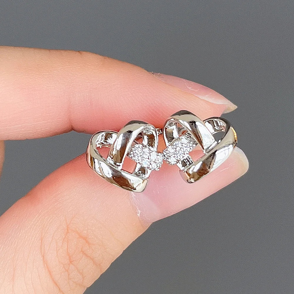 Huitan Eternity Love Earrings Ear Stud Piercing Silver Color/Gold Color Fashion Heart Earrings for Women Chic Wedding Jewelry