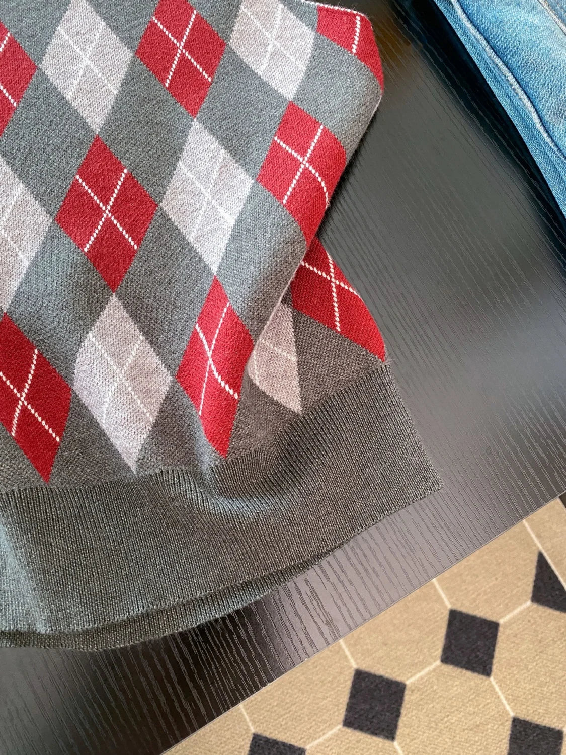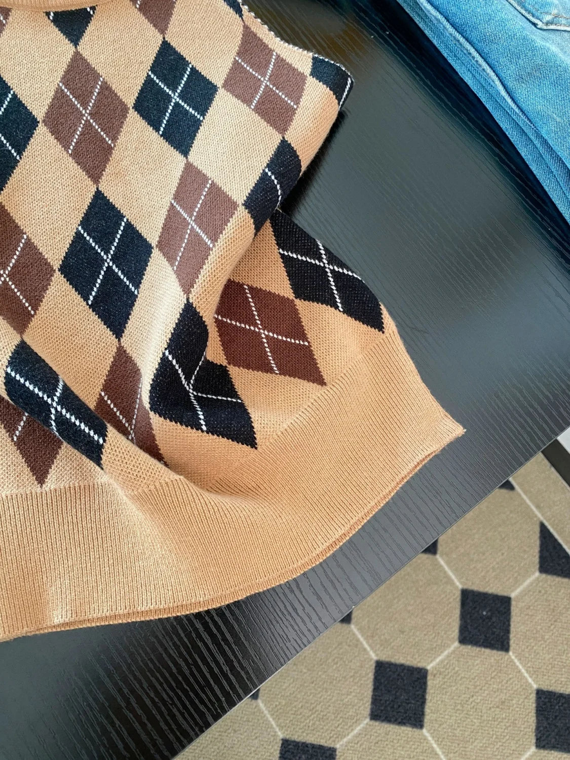 Women's Vintage Plaid Sweater Vest Ulzzang Style Knitted Preppy Soft Crew Neck Loose Top Fit Streetwear Camisole for Girls