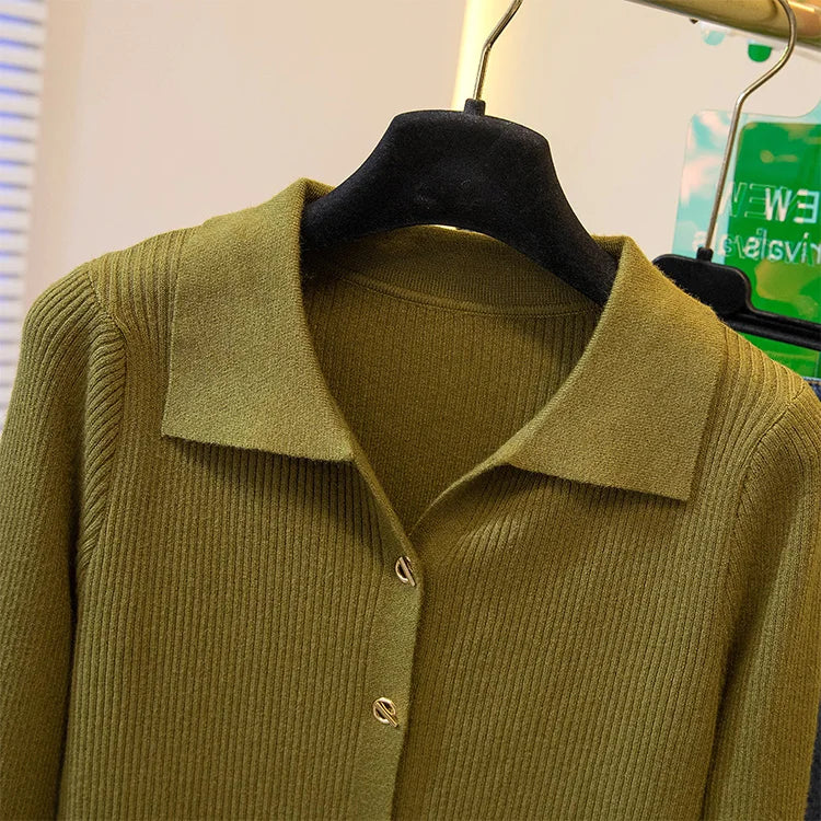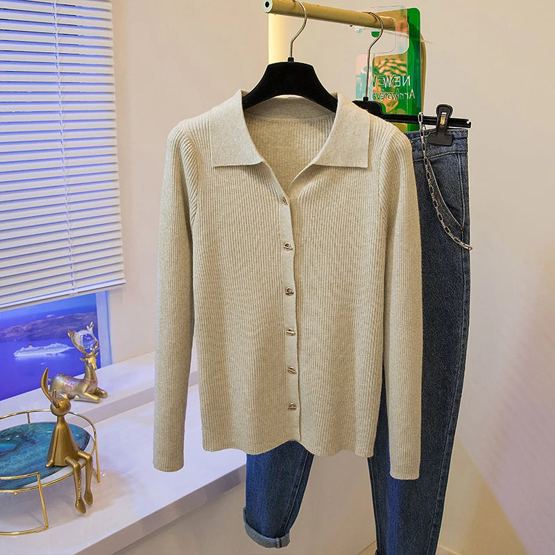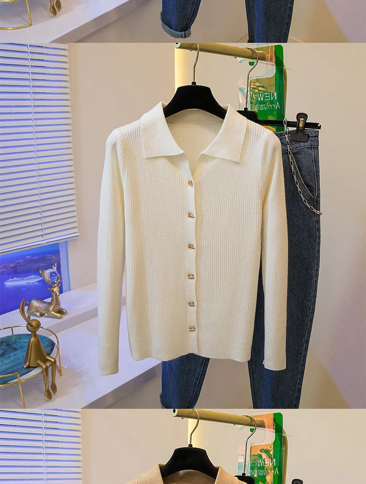 2026 Korean Style Fashion Autumn Winter Turn Down Collar Cardigan Knitted Sweater Casual Loose Long Sleeved Base Sweater Women